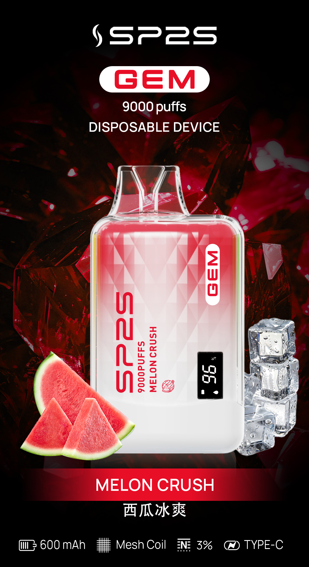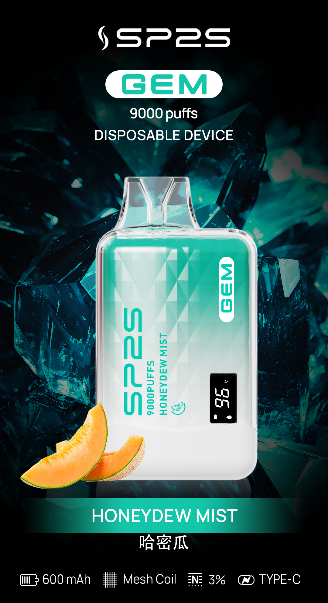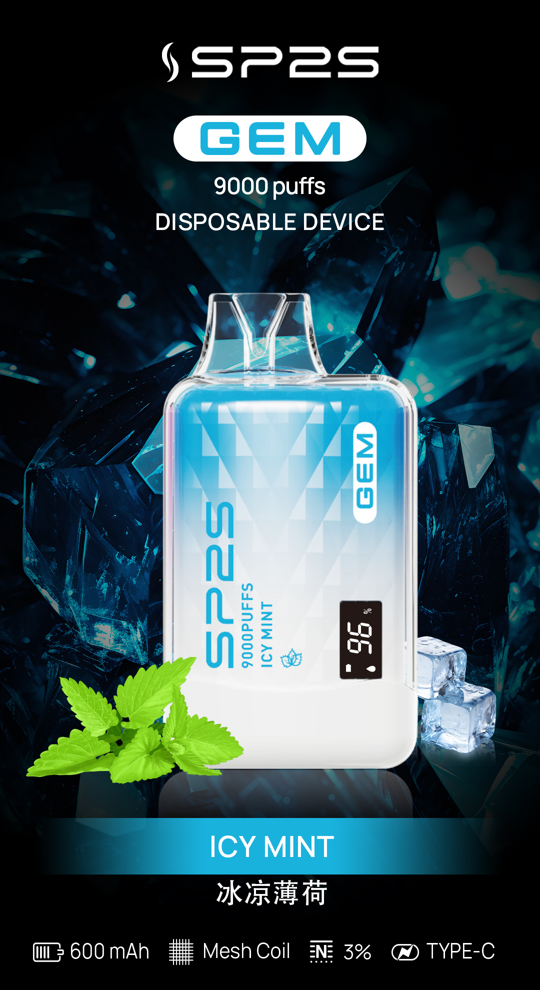 SP2S思博瑞9000口搭載先進的霧化技術: 內部採用了先進的霧化技術,煙霧飽滿、順滑,口感更加濃郁。每一口吸入都能讓您感受到滿足的煙霧和舒適的味覺體驗。
