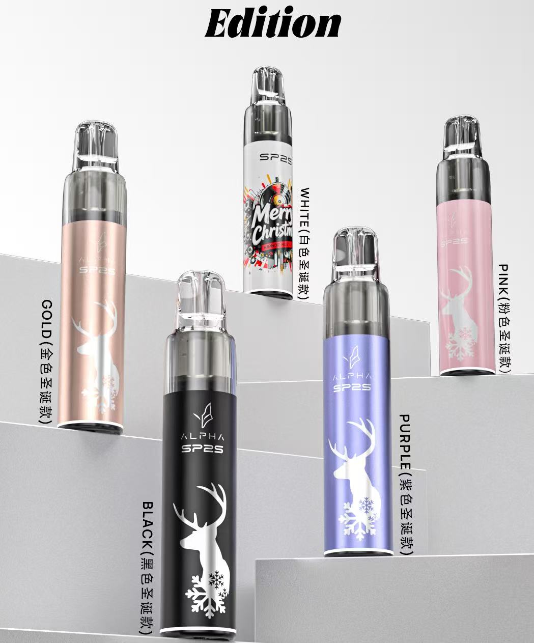 SP2S ALPHA 圣诞限量版精美麋鹿剪影与雪花图腾,打造专属圣诞的时尚单品。五款绝美配色:涂鸦白、奢华金、深邃黑、极光紫、甜美粉,满足不同个性。送礼首选:高颜值外观与精致工艺,为您的节日派对增添独特光彩。限量发售:数量有限,值得珍藏的潮流之选。