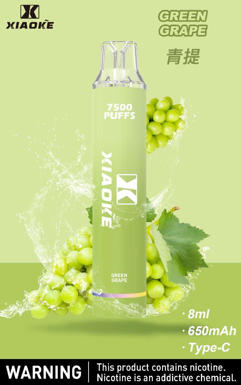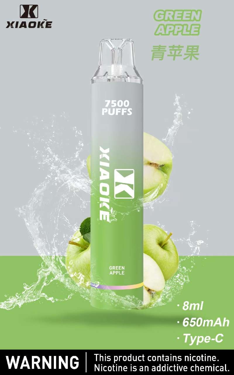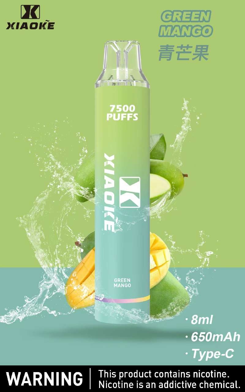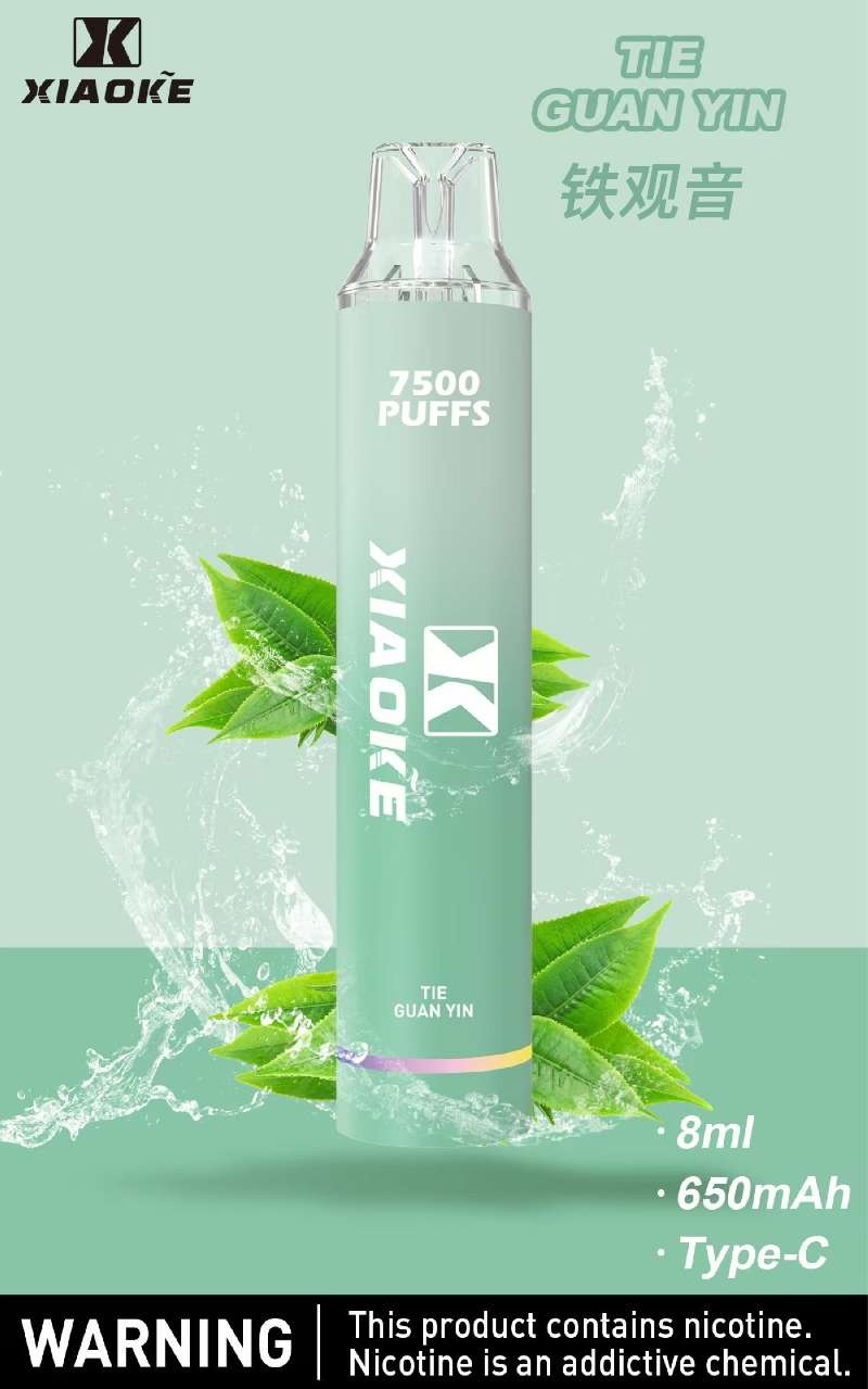 Xiaoke枭客7500口一次性抛弃式電子煙、新款上市25种口味吸入时亮彩色跑马灯